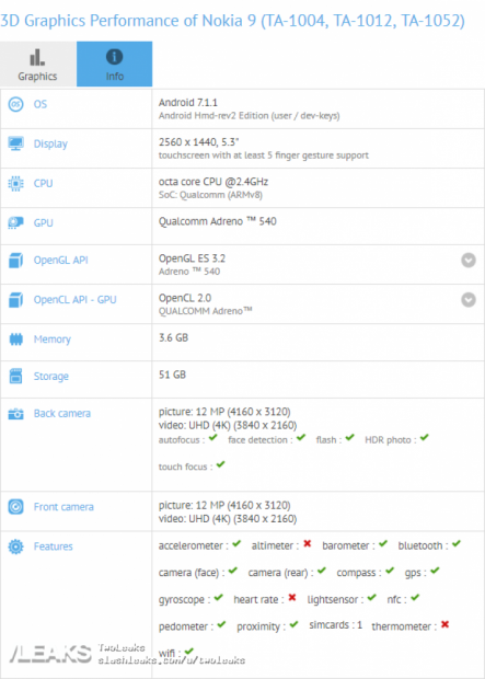 Ngoài ra, một kết quả benchmark mới xuất hiện cũng cung cấp đủ thông tin về sản phẩm này. Nokia 8 sẽ có màn hình 5.3' 2K, dùng SnapDragon 835, 4GB RAM và 64GB RAM. Camera sẽ rất thú vị với camera kép 12MP ở mặt sau, sử dụng ống kính Zeiss còn camera trước là 12MP với khả năng quay 4K, điều cực kỳ hiếm thấy trong thế giới điện thoại cao cấp.
