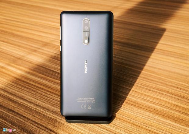 Nokia 8 có ngôn ngữ thiết kế giống với người tiền nhiệm Nokia 6 nhưng nhỏ hơn. Mặt lưng được làm từ kim loại với điểm nhấn là logo Nokia cùng cụm camera nằm dọc đặc trưng. Độ hoàn thiện của sản phẩm này rất tỉ mỉ. Các cạnh bên được vát cong tạo cảm giác cầm thoải mái.