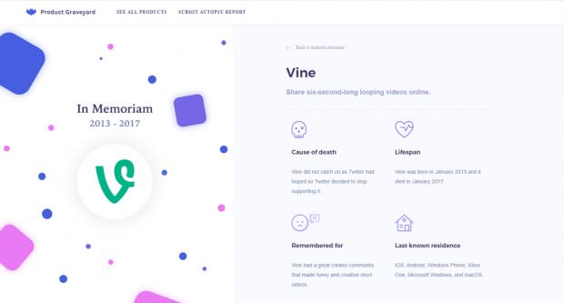 - Nguyên nhân khai tử: Vine đã không đáp ứng được sự kỳ vọng của Twitter và họ đã quyết định ngừng hỗ trợ nó (mặc dù ông trùm khiêu dâm Pornhub đã có ý định mua lại Vine để biến thành nơi cung cấp video khiêu dâm phong cách '6 giây là đủ').