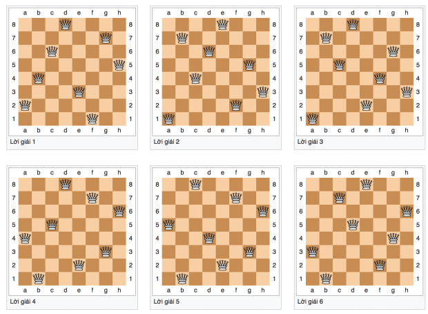 Chi tiết hơn xíu về thế cờ Queen's Puzzle. Nó được đưa ra hồi năm 1848 và câu đố chỉ đơn giản là tìm cách xếp 8 quân hậu nằm trên bàn cờ 8 x 8 sao cho những quân hậu không thể ăn lẫn nhau, nói cách khác là tìm cách xếp sao cho không có quân hậu nào có thể di chuyển theo quy tắc cờ vua. Nếu bạn biết cờ vua thì không cần phải nói, quân hậu là quân cực kỳ mạnh với khả năng di chuyển 8 hướng với bất kỳ khoảng cách nào. Và chính sự tự do di chuyển của những quân hậu này đã khiến cho Queen's Puzzle trở nên cực kỳ phức tạp đối với các kỳ thủ lẫn nhà toán học.