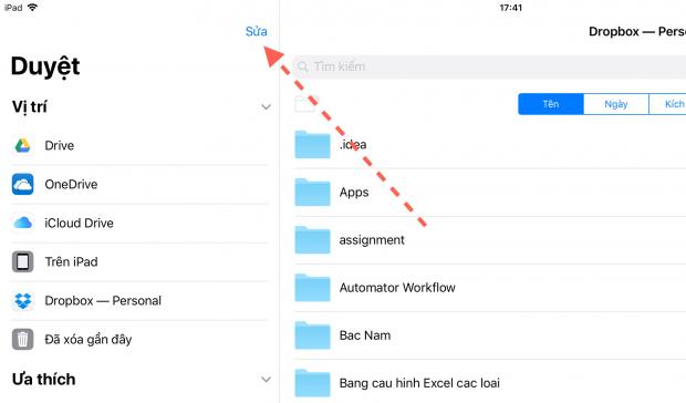 Lưu ý 3: nếu Dropbox không hiện sẵn trong app Files, nhấn vào nút Sửa này để bật Dropbox lên