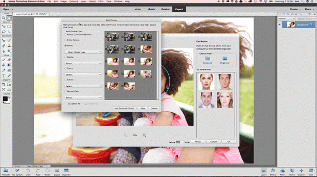 Trước đây những người dùng hơi chuyên một chút có thể ghép đôi mắt từ một bức ảnh khác sang để cứu vãn tình hình nhưng sắp tới, trong phiên bản Photoshop Elements 2018 thì phần mềm sẽ tự nhận diện, ghép nối và “mở mắt” chủ thể ra thông qua tính năng gọi là Open Closed Eyes.