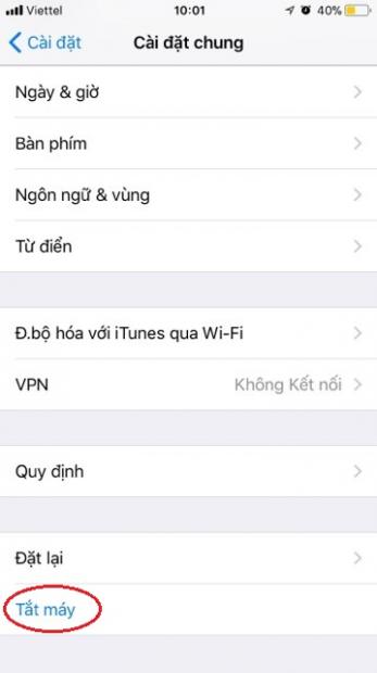 Theo đó, trên iPhone hoặc iPad, bạn có thể vào phần Cài đặt > Cài đặt chung, kéo xuống dưới và nhấn vào dòng Tắt máy (màu xanh). Sau đó bạn cũng kéo thanh trượt sang phải để tắt nguồn. Rất đơn giản phải không nào?
