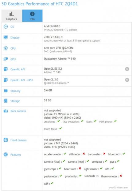 Qua bài kiểm tra hiệu năng cho thấy điểm số của chiếc HTC bí ẩn này nằm trong khoảng ngang hàng với các thiết bị dùng chip snapdragon 835 khác và cũng tương đương với HTC U11. Đồng thời, cũng cho thấy đây sẽ là smartphone màn hình tỉ lệ 18:9 đầu tiên của HTC.