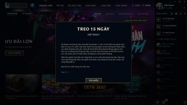 Những kẻ có hành vi cố ý chết làm hỏng cả một trận đấu sẽ bị phạt cấm chơi 15 ngày lần đầu tiên và tăng thành cấm chơi vĩnh viễn ở lần tiếp theo tái phạm. Bằng việc sử dụng các chỉ số trong trận, bản ghi chat và các kiểu mẫu chơi từ trước đến giờ, chúng tôi đảm bảo hệ thống sẽ hiểu được sự khác biệt giữa bạn cố ý chết hay bạn bị đối phương bên kia đè tắt thở. Bạn không cần phải lo lắng nếu vừa thi đấu một trận khá tệ đâu.