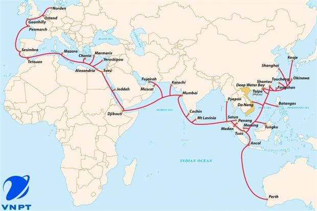 Đường đi của tuyến cáp SMW-3 (Nguồn: VNPT)