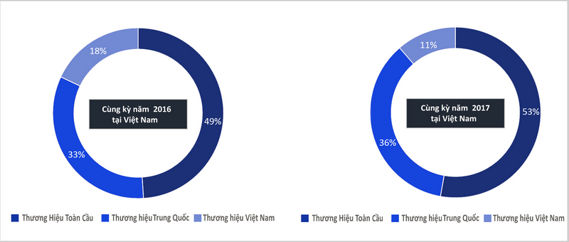 Các thương hiệu Trung Quốc và toàn cầu đang tích cực hơn trong việc chi vào các hoạt động tiếp thị và quảng cáo trong khi các thương hiệu Việt Nam có ít ngân sách hơn để đầu tư vào phát triển thương hiệu. Đây là điều dễ hiểu, vì thương hiệu Việt dễ bị vượt qua do khả năng tài chính và kinh nghiệm 'đầy mình' của các thương hiệu nước ngoài.