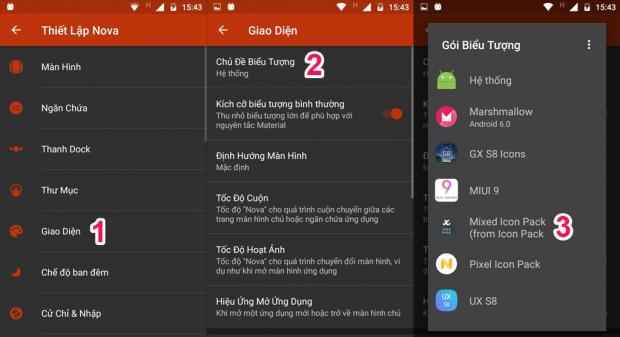 B5: Để sử dụng icon, bạn mở launcher bất kỳ (mình dùng Nova nhé) > chọn mục Giao diện > tùy chỉnh biểu tượng > chọn Mix icon pack đã tạo là xong.