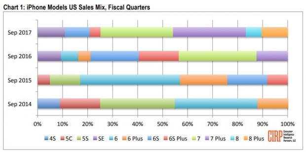 Theo số liệu được cung cấp bởi CIRP, hầu hết người mua iPhone 8 đều coi thiết bị này là một phiên bản nâng cấp nhỏ và doanh số chỉ tương đương với các máy dòng S. Số lượng máy bán ra của bộ đôi iPhone 8 và 8 Plus chỉ chiếm 16% trên tổng số máy được bán ra ở thị trường Mỹ.