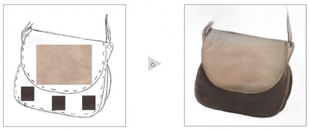 Tương tự với chiếc túi này, ảnh đơn sắc chỉ và được lấp bề mặt bằng gợi ý của người dùng. Độ chân thực cao nhờ xử lý khéo léo phần bề mặt, chất liệu và cả làm giả những nếp gấp, chỗ bị bẩn,...