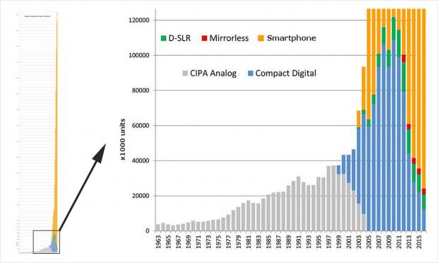 Nguyên nhân được Nikon đưa ra là do sự sụt giảm mạnh của thị trường máy ảnh Compact gây ra bởi smartphone khiến sản lượng sụt giảm. Số liệu từ hiệp hội CIPA (Camera & Imaging Products Association) năm 2010, lượng máy ảnh compact bán ra lên đến 107000000 máy, và đến 2017, con số này chỉ còn còn hơn 12000000 máy, bằng 1/9 so với thời điểm trước. Đây là kết quả 'đã được thông báo trước' khi thị trường điện thoại thông minh bùng nổ và các nhà sản xuất lớn như Apple, Samsung, LG,... liên tục chạy đua Camera trong những năm gần đây.