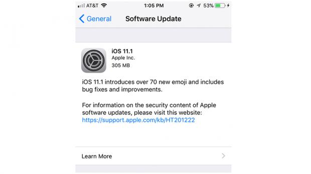 Bản cập nhật có dung lượng 305 MB (nếu update từ phiên bản iOS 11.0.3)