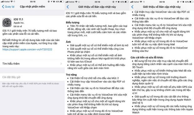 Nếu bạn đang chạy một phiên bản iOS cũ hơn, dung lượng tải về của bạn sẽ lớn hơn do các tính năng và các bản sửa lỗi bạn từng bỏ qua. Các tính năng và sửa lỗi từ những cập nhật bạn bỏ lỡ được tập trung hết vào iOS 11.1.