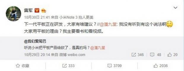 Theo gizchina, Giám đốc tiếp thị Xiaomi – Zang Zhiyuan mới đây đã đăng tải trên trang Weibo của mình cho biết: Xiaomi đang phát triển thế hệ Mi Pad tiếp theo và lý do gỡ bỏ Mi Pad 3 ra khỏi trang web là vì hàng đã hết trong kho.