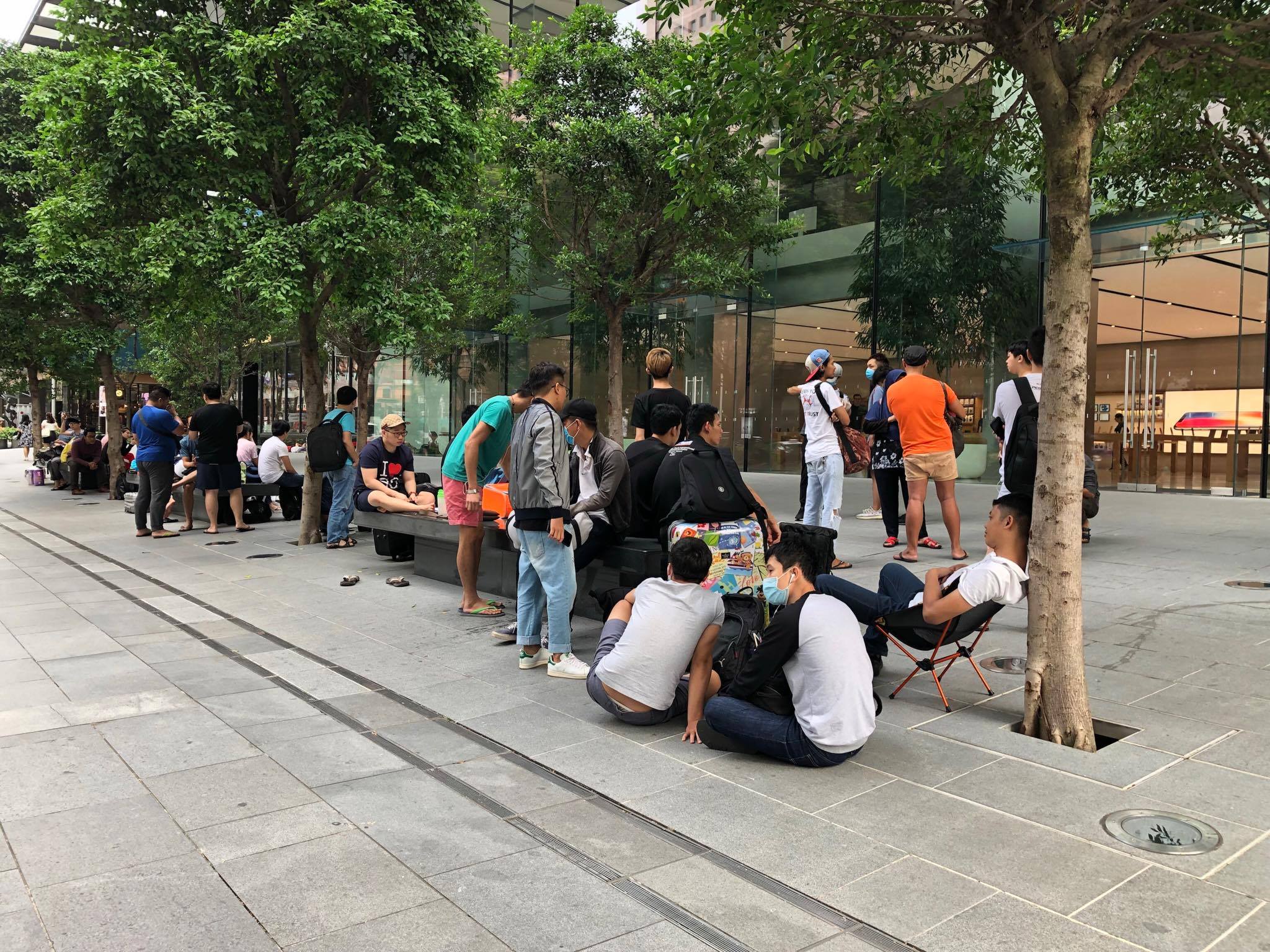 Hình ảnh anh em đang đợi iPhoneX ở trước cửa hàng Apple ở Singapore hôm qua.