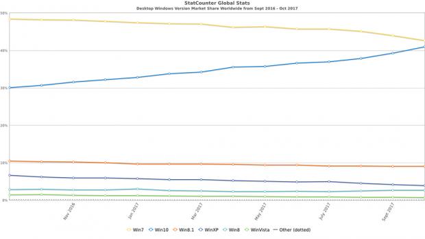 Trước đây, các số liệu thống kê (không chỉ riêng từ NetMarketShare) luôn cho rằng Windows 10 chỉ tăng trưởng ở mức rất thấp bé trong thị phần hệ điều hành, mặc dù Microsoft đã cố mọi cách, từ 'khuyến cáo' nâng cấp cho đến các chương trình nâng cấp Windows 10 miễn phí kéo dài hơn so với hạn trước đó. Tuy nhiên, một kết quả thống kê thị phần của các hệ điều hành Windows (Desktop) mới đến từ StatCounter đã đưa ra được kết quả khả quan hơn cho hệ điều hành này.