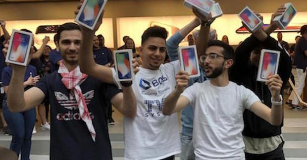 Ahmed Rassa (trái), Bishoy Behman (giữa) và Mazem Kourouche - những người đầu tiên sở hữu iPhone[/b] X. Họ đều dưới 20 tuổi. Ảnh: Theaustralian