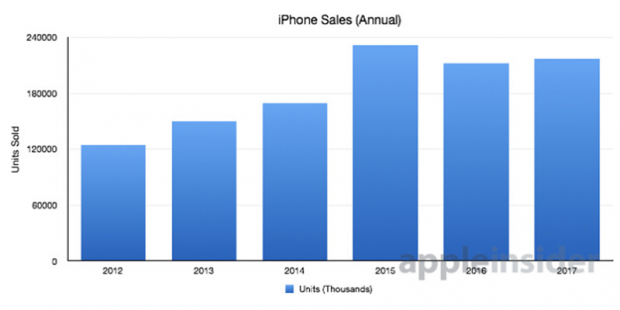 Nhưng vài năm sau đó, số lượng tiêu thụ iPhone đã giảm nhẹ. Có thể, ngày nay giá cả của chiếc điện thoại thông minh khá mắc tiền nên người sử dụng ít thay đổi điện thoại của mình.