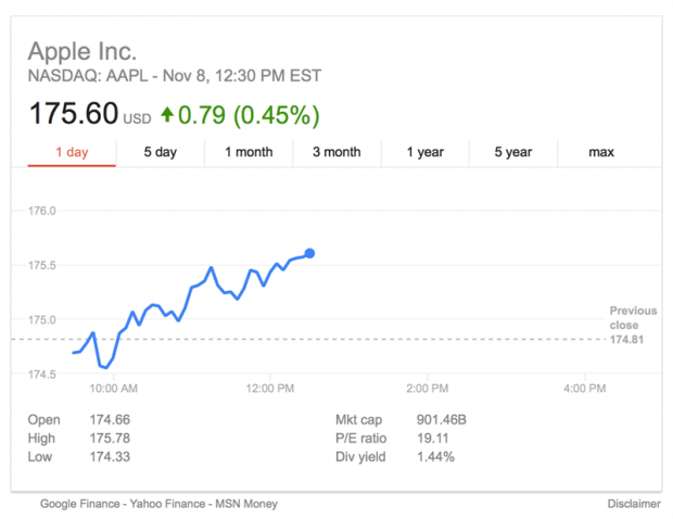 Cổ phiếu của Apple (mã AAPL) hiện đang giao dịch quanh mức 175.6 USD (mức cao nhất là 175.78 USD). Với tốc độ tăng giá cổ phiếu như hiện tại, Apple đang trên đường trở thành công ty đầu tiên của Hoa Kỳ có vốn hóa thị trường 1.000 tỷ USD.