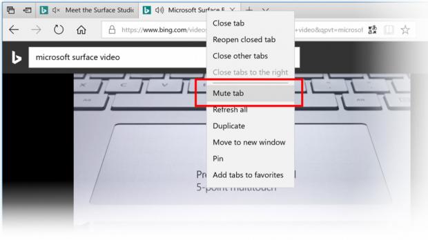 Đi kèm với tính năng Near Share mới, Microsoft đã bổ sung thêm chức năng Mute tab trong trình duyệt Edge. Giống như Chrome, Mute tab sẽ tắt âm thanh gây khó chịu khi phát video tự động hoặc quảng cáo trong các trang web. Bên cạnh đó, Microsoft đã đưa Surface vào Windows Store, cho phép người dùng Windows 10 mua các thiết bị và phụ kiện hỗ trợ.