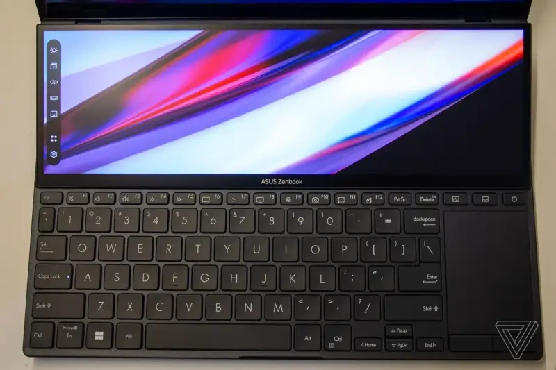 Asus đã làm dạng màn hình kép này được một thời gian. Giống như các mẫu trước đó của dòng Duo: một màn hình lớn 14,5 inch ở phía trên và một màn hình phụ 12,7 inch nhỏ hơn ở phía bàn phím (ScreenPad Plus). Bàn phím ở phía dưới với một bàn di chuột ở phía bên phải của nó. Nhưng công ty đã thực hiện một chỉnh sửa nhỏ giúp việc sử dụng được thoải mái hơn đáng kể, đó là nâng màn hình phụ lên 12 độ.