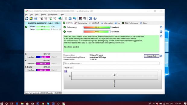 - Theo dõi sức khỏe của ổ cứng với các thông tin như: Tình trạng hoạt động của ổ cứng, nhiệt độ, và giá trị S.M.A.R.T.
