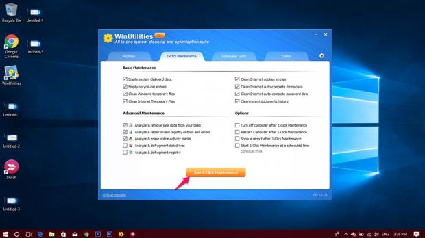 - Khởi động phần mềm WinUtilities Pro, sau đó click vào tab 1 - Click Maintenance.