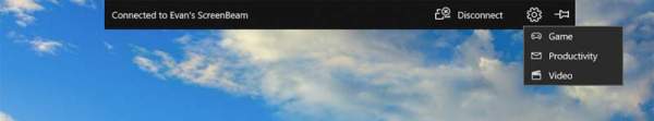 Bản build cũng có nhiều cập nhật về giao diện khi bạn kết nối với một thiết bị trình chiếu không dây (wireless projection). Khi kết nối với thiết bị này, Windows sẽ hiển thị một bảng điều khiển gần tương tự như Remote Desktop cho phép bạn quản lý các tính năng trên thiết bị trình chiếu như ngắt kết nối, cấu hình các chế độ hiển thị (ví dụ: Gaming, Video, hay Productivity,…).