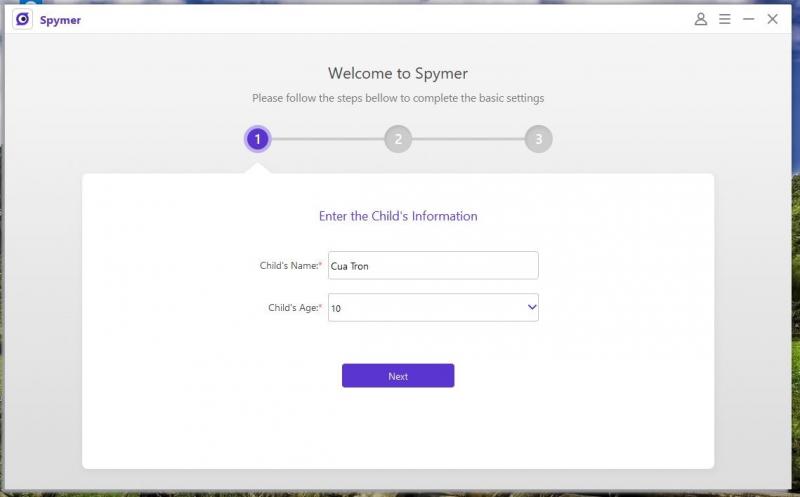 Bước 1: Ngay sau khi mở lần đầu tiên, phần mềm sẽ yêu cầu bạn nhập Tên và tuổi của trẻ để tiện quản lý, sau đó nhấp Next để tiếp tục.