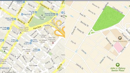 Một chuyên gia về dữ liệu đã trình diễn một loạt hoạt động giống nhau trên Google Maps và Apple Maps: bao gồm tìm kiếm một số địa chỉ trong thành phố của Mỹ, các sân bay và phóng to/thu nhỏ để xác định vị trí các địa điểm cụ thể.