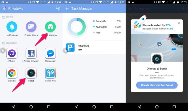 Tính năng phụ: Bên cạnh đó, bạn có thể sử dụng tính năng Task Manager để kiểm tra tình trạng của thiết bị. Hoặc Boost để tăng hiệu suất hoạt động của thiết bị.