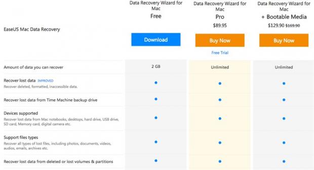 Hiện tại phần mềm đang cho phép người dung khôi phục tối đa 2GB. Tuy nhiên nếu bạn muốn hơn nữa, có thể nâng cấp lên gói tính phí. Với các tính năng chính là: