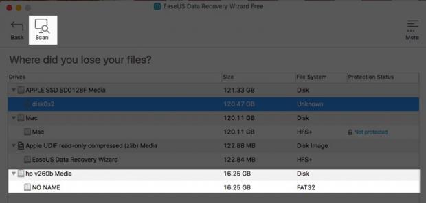 Ngay sau đó, bạn hãy chọn ổ đĩa, nơi dữ liệu bị xóa. Ở đây, bạn có thể chọn các ổ đĩa có trên thiết bị, ngay cả ổ đĩa USB.