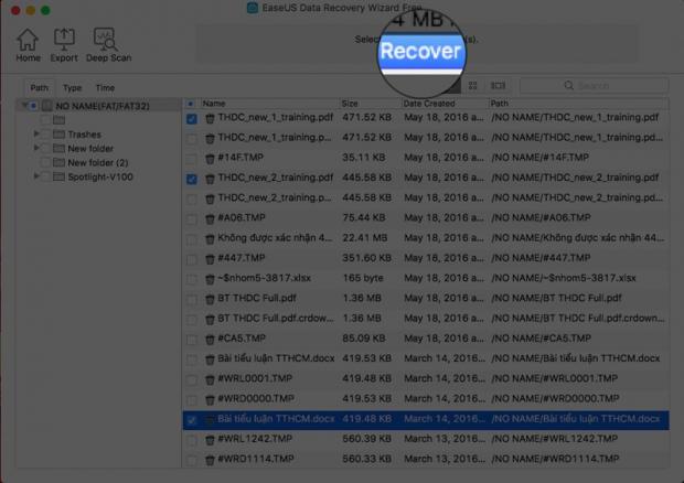 Việc bạn cần làm bây giờ chỉ là tìm lại dữ liệu cần khôi phục và chọn Recover để chọn vị trí lưu trữ và lưu tệp tin khôi phục.