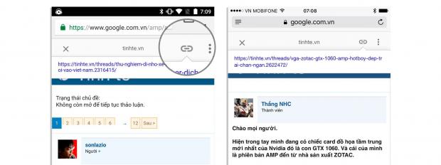 Đoạn video so sánh tốc độ cuộn trang của trang web có AMP và không AMP
