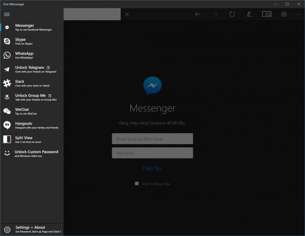 Mình tìm một giải pháp chat tất cả các dịch vụ trong một ứng dụng và có được One Messenger. Ứng dụng này khá giống Franz, hỗ trợ nhiều dịch vụ chat như Messenger, Slack, Hangouts, WhatsApp, Skype, Telegram …