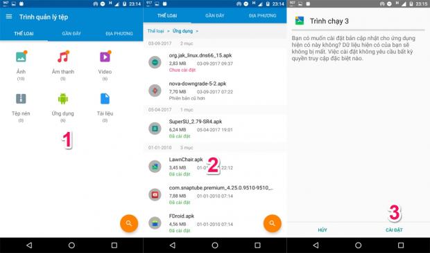 Để cài đặt launcher bạn mở trình quản lý tệp tin trên máy, tìm đến vị trí lưu trữ file APK của Lawnchair và tiến hành cài đặt là xong.