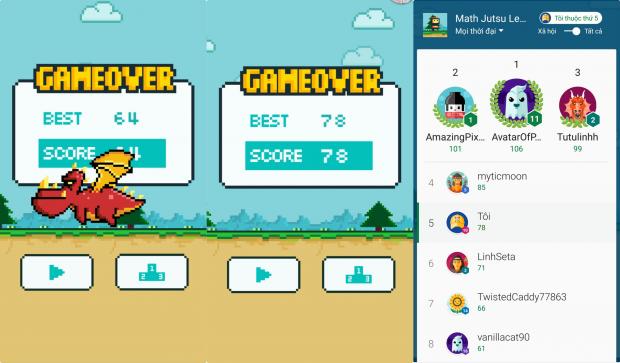 Ngoài ra, nhân vật sẽ không ngừng di chuyển về trước để đâm đầu vào những con quái vật và đó cũng là khoảng thời gian để bạn đưa ra kết quả. Càng về sau, tốc độ 'đi tự sát' của nhân vật sẽ càng nhanh và bạn sẽ phải đưa ra kết quả nhanh hơn, trong khi các phép toán ngày càng khó hơn. Giờ thì mời anh chị em, chơi thử và chia sẻ kết quả của mình bên dưới nhé. Hiện tại, điểm số cao nhất của mình tạm dừng lại ở 78.
