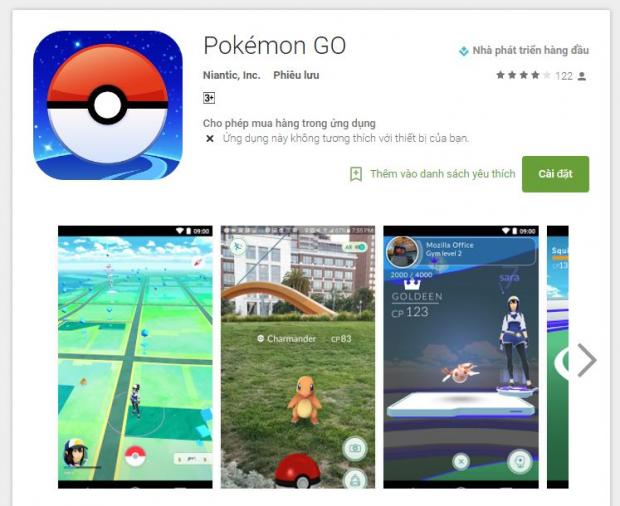 Pokemon Go có mặt chính thức trên Play Store của Google