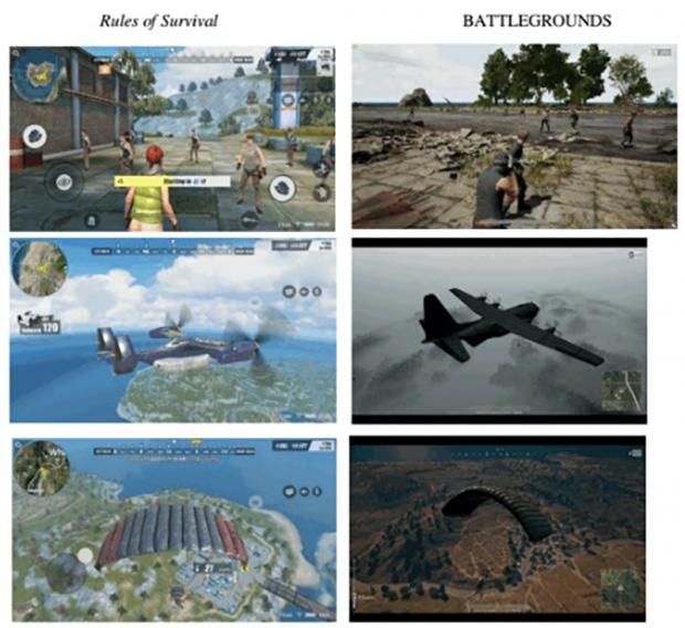 Trong vụ kiện, PUBG Corp nêu bật 25 yếu tố cụ thể mà họ cho là RoS và KO đã vi phạm bản quyền trong cả hai trò chơi, bao gồm những tính năng quen thuộc như “vòng bo”, số lượng người chơi, sảnh chờ trước khi vào trận, phương tiện di chuyển, các loại vũ khí (đặc biệt là sử dụng dụng cụ nấu ăn như vũ khí), các thương tích của nhân vật tùy theo vị trí bắn của đối thủ,...