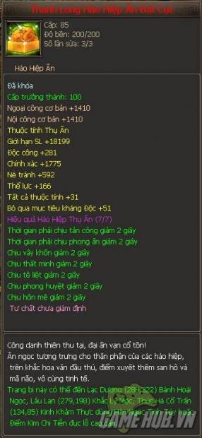 Hào Hiệp Thụ Ấn giúp thời gian chịu tấn công giảm 2 giấy, chịu phong ấn giảm 1,6 giây,….