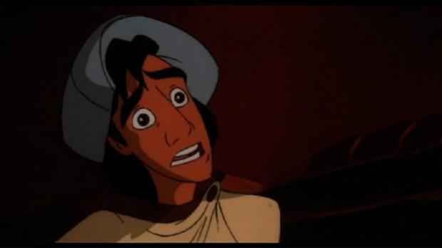Trong kịch bản gốc, phần một của Aladin khá là nhạt nhẽo, nhưng trong phần hai nó được bổ sung thêm nhiều yếu tố “gây sốc” hơn. Nhân vật người cha của Aladin sau khi bị giết hại, xác của ông được xé nhỏ ra thành nhiều phần giải xung quanh hang động chứa kho báu của bốn mươi tên cướp để cảnh báo mọi người đi ngang qua đấy. Về sau, phần xác của người cha được một người thợ may khâu vá lại hoàn chỉnh để người nhà của Aladin nghĩ rằng đây là một cái chết bình thường.
