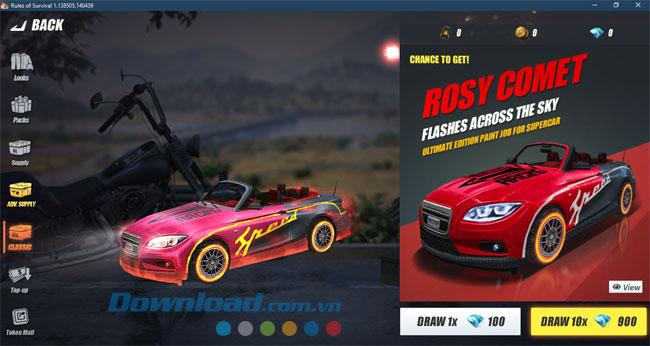 Mục Classic bạn sẽ mua được những skin cho xe hơi, với giá tiền hoàn toàn là kim cương.