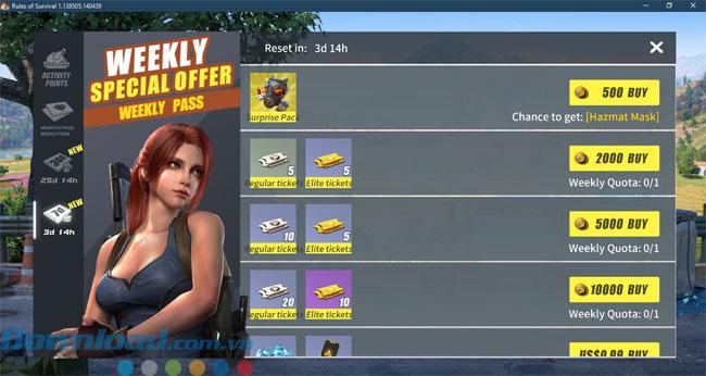 Để xem những hoạt động đang diễn ra trong game bạn hãy bấm vào mục Activity, sẽ có những hoạt động giảm giả hoặc sự kiện diễn ra trong game.
