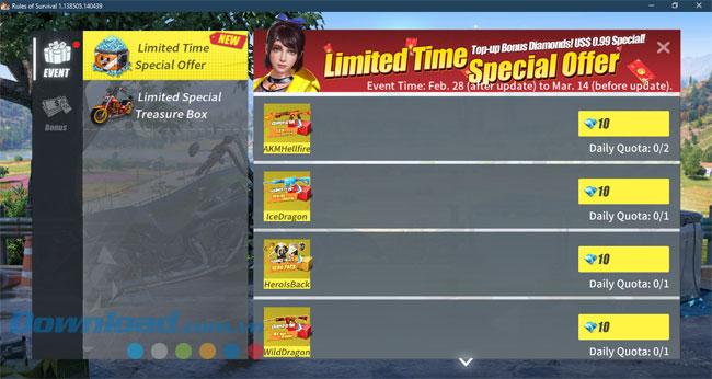 Phải nói là Rules Of Survival rất ưu đãi với game thủ khi thực hiện nhiều sự kiện tặng thưởng cho game thủ khi mới vào.