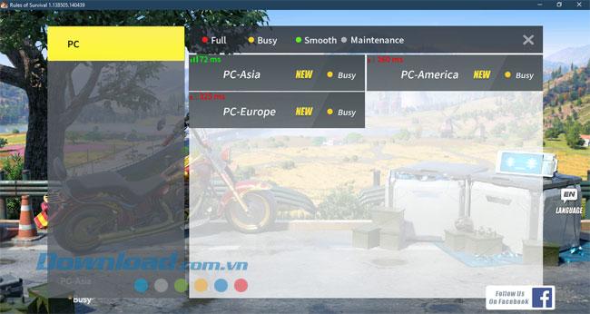 Bước 4: Chọn khu vực Server muốn chơi, bạn hãy lưu ý rằng số ms càng cao thì chơi sẽ càng lag, còn màu sắc sẽ thể hiện tình trạng của server có đông hay không.