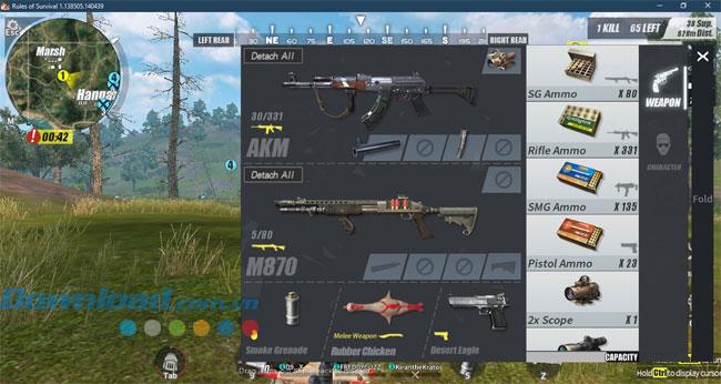 Muốn theo dõi toàn bộ thông tin của bản đồ bạn hãy nhấn phím M, bản đồ lớn sẽ hiện ra, bạn có thể thấy một vòng tròn mờ màu trắng đang thu hẹp lại trên bản đồ đó là thông báo khí độc đang tràn đến và thu hẹp lại trên bản đồ. Hãy chú ý điều đó và tránh xa khỏi vùng bị thu hẹp lại, nếu không bạn sẽ bị nhiễm độc và mất máu dần dần đấy.