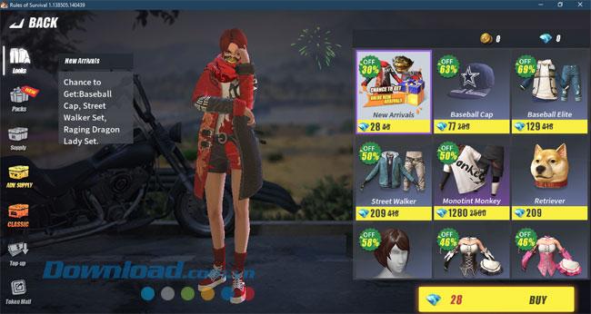 Cửa hàng này sẽ cho bạn thấy những vật phẩm đang được sale khủng trong game và bán theo gói hoặc riêng lẻ ở mục Looks đầu tiên. Những gói hoặc vật phẩm sẽ được mua bằng kim cương