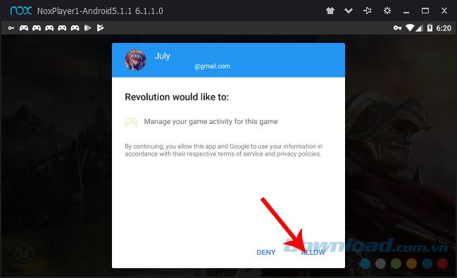 Bước 2: Chọn Allow để đồng ý cho game truy cập vào một số quyền trong tài khoản Google của bạn.