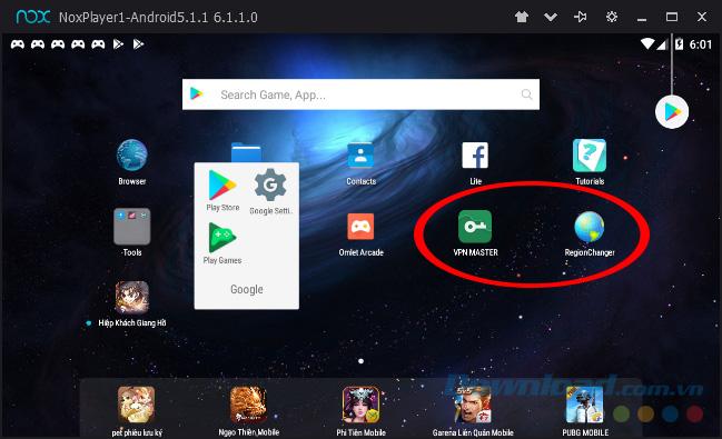 Bước 3: Sau khi máy ảo mới chạy xong, các bạn cần tải thêm hai ứng dụng khác là Region Changer và VPN Master. Cả hai ứng dụng này đều có thể tìm và tải từ kho ứng dụng Play Store.